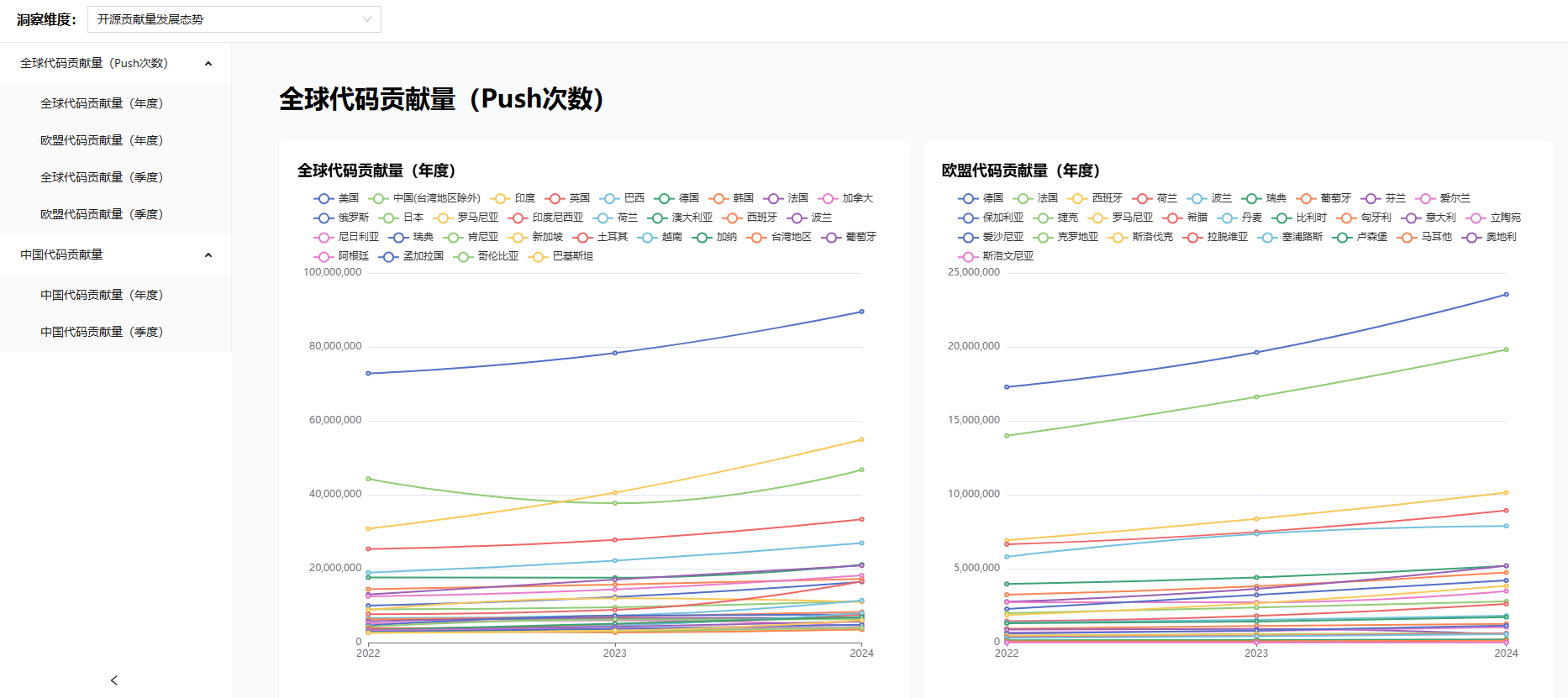 例如,点击"开源贡献量发展态势"维度,您将进入该维度的专属页面。